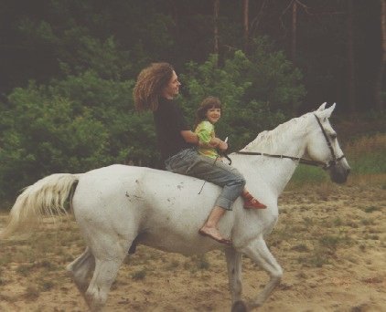 Das bin ich auf Benjamin beim Ausreiten, wir haben noch eine kleine Tramperin mitgenommen.